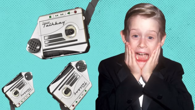 Antrojoje kultinio filmo dalyje Kevinas Makalisteris pademonstravo naują, tuo metu neįtikėtinai modernų žaislą, pavadintą „Talkboy“. Tai buvo rankinis magnetofonas, leidęs ne tik įrašyti garsą, bet ir jį atkurti pakeistu greičiu. Vienas įsimintiniausių momentų filme yra scena, kai Kevinas, pasinaudodamas „Talkboy“, apsimeta savo tėvu ir užsisako prabangų kambarį „Plaza“ viešbutyje.