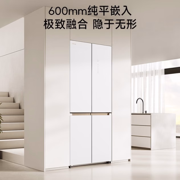 600 milimetrų gylio korpusas leidžia šaldytuvą idealiai įmontuoti į virtuvės baldus, todėl jis atrodo tarsi neatsiejama modernios virtuvės dalis.