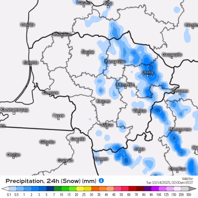 „Meteologix“ modelių žemėlapiai rodo, kad tai bus lokalus reiškinys, tačiau pakankamai aiškus, kad būtų laikomas pirmuoju šios rudens–žiemos sezono perėjimo signalu.