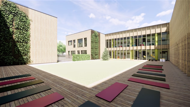 Vaikų darželis bus U formos, su vidiniu kiemeliu. Jame – lauko muzikos instrumentai ir pasodintas „kalėdų“ kėnis. Kiemelyje bus terasa, skirta renginiams, sporto užsiėmimams ir kitoms veikloms.