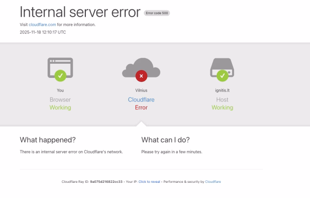 Antradienį, lapkričio 18 dieną, Lietuvoje ir pasaulyje fiksuojami masiniai interneto sutrikimai. Dalis naujienų portalų, agentūrų bei kitų svetainių tapo nepasiekiamos arba pateikia 500 tipo klaidas.