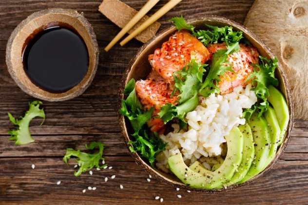 Jei, pasak „Maximos“ kulinarijos meistrų, nesinori salotų, iš vakarykščių pietų ar vakarienės likučių galite išmėginti paruošti greitam ir pigiam valgiui lašišos ryžių dubenėlį. Jam reikės:
