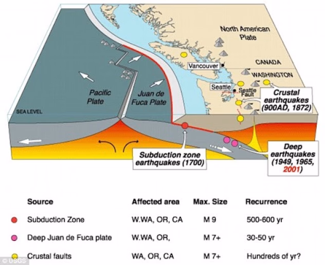 Naujas tyrimas rodo, kad du didžiausi JAV lūžiai yra Kaskadijos ir San Andreaso, gali būti susiję labiau, nei manyta iki šiol. Jei Kaskadijos zonoje įvyktų 9 balų žemės drebėjimas, jis galėtų sukelti grandininę reakciją.