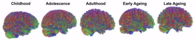 Jungtinės Karalystės „University of Cambridge“ ir Jungtinių Valstijų „University of Pittsburgh“ neuromokslininkai nustatė keturis didelius smegenų jungčių lūžius tarp gimimo ir senatvės. Kiekvienas jų žymi savotišką naują smegenų gyvenimo skyrių.