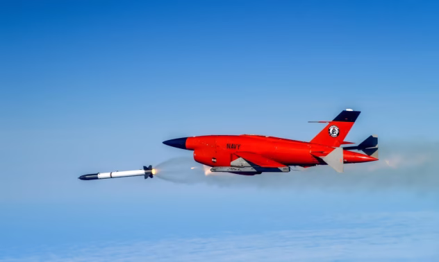 JAV karinis laivynas paskelbė apie svarbų pasiekimą: pirmą kartą istorijoje sėkmingai atliktas raketos su kietojo kuro strėliniu varikliu (SFIRR) paleidimas iš bepiločio orlaivio.
