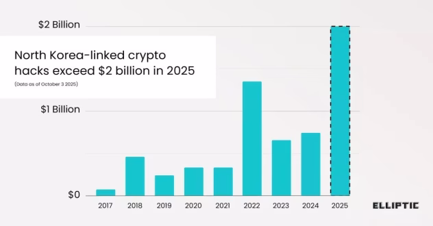 Londono blokų grandinės analizės įmonės „Elliptic“ duomenimis, su Šiaurės Korėja susiję hakeriai šiais metais pavogė daugiau nei 2 mlrd. JAV dolerių vertės kriptovaliutų, o tai jau viršija bet kokį ankstesnį metinį grobį.